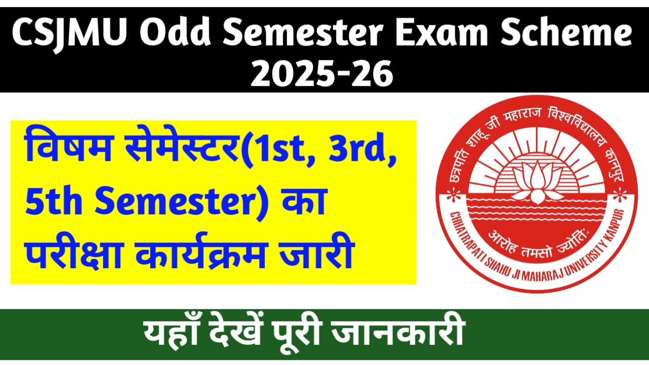 CSJMU Odd Semester Exam Scheme 2025-26: विषम सेमेस्टर की परीक्षा कार्यक्रम जारी, यहाँ देखें पूरी जानकारी